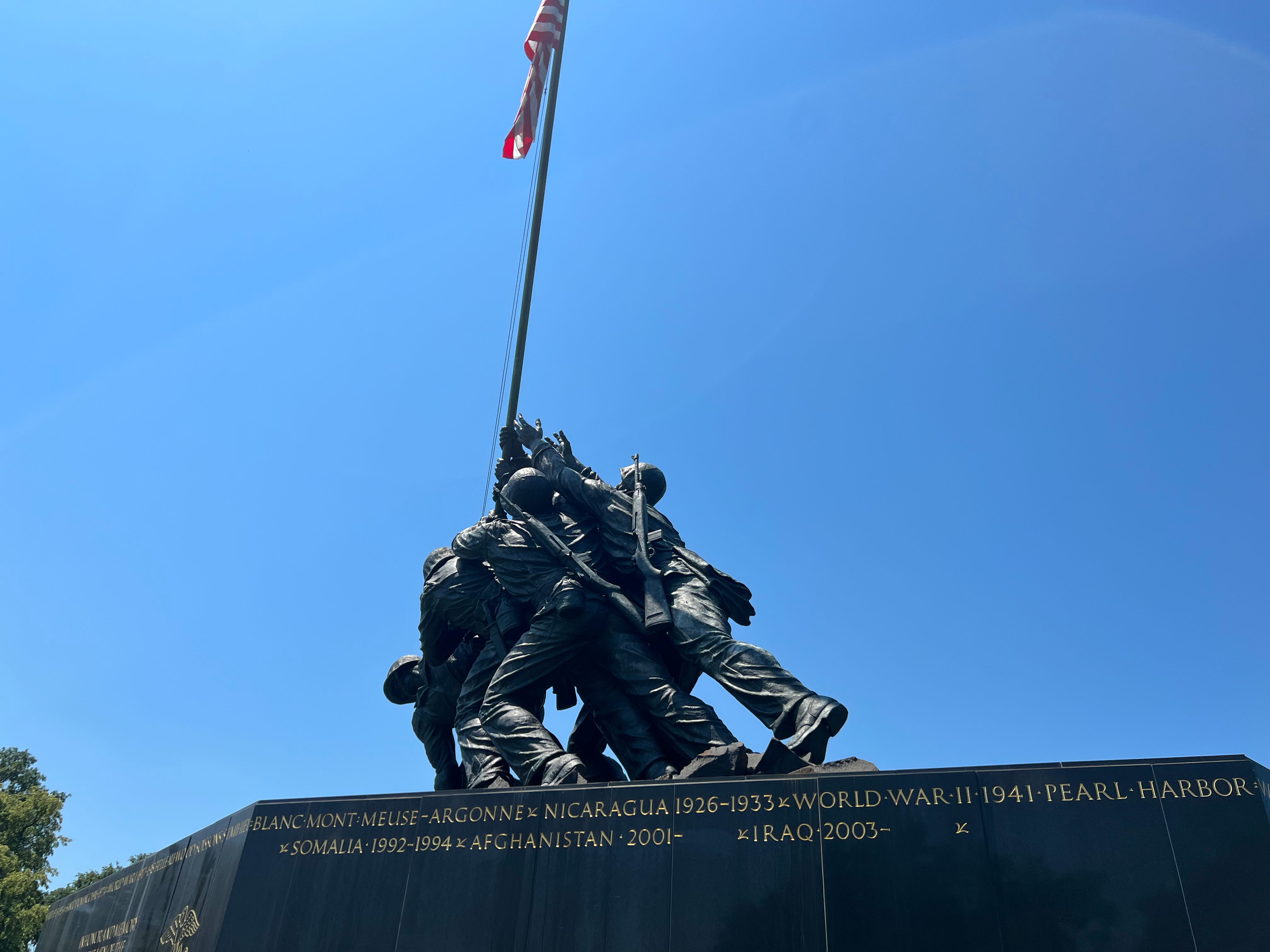I was recently at the Marine Corps War Memorial with a friend who is a Gold Star mother. Her son was killed in Afghanistan in 2009. We watched as tour buses of mostly teenagers took selfies and joked and had their backs to the Iwo Jima statue.